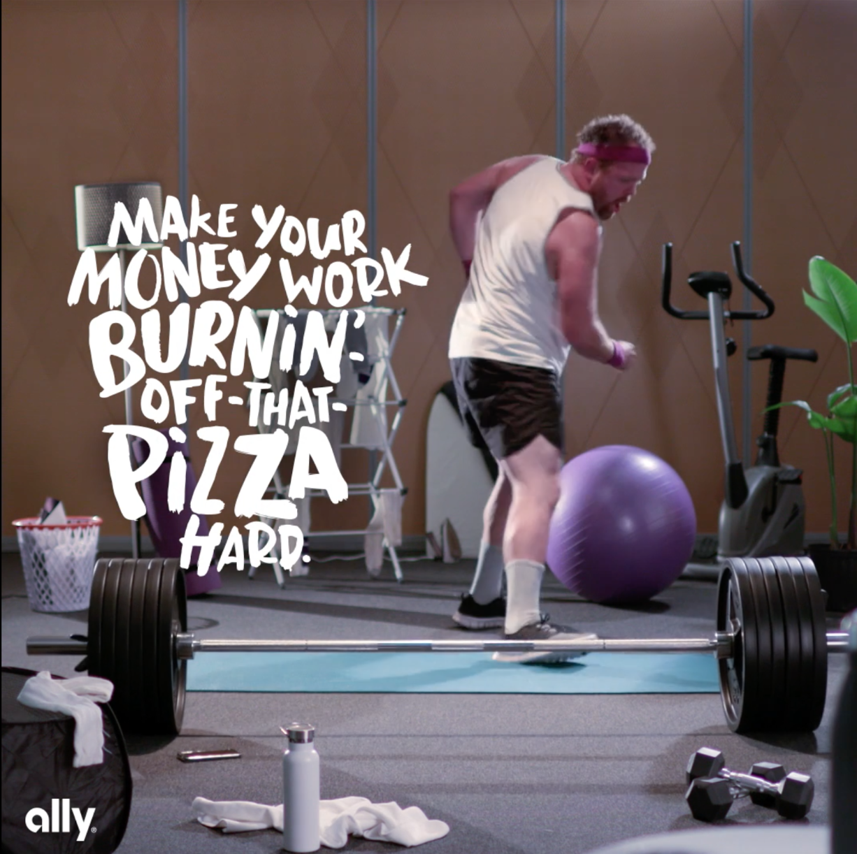 Ally Bank is proud to work hard to help their customers' money grow and wanted a fun, interesting way to communicate this across their social channels utilizing someone working out.